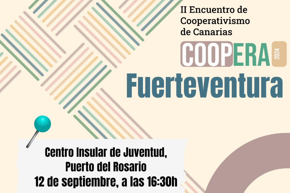 El Centro Insular de Juventud de Puerto del Rosario, en Fuerteventura, acogerá el próximo jueves 12 de septiembre, a partir de las 16:30 horas, una jornada divulgativa de carácter gratuito dirigida a personas y entidades interesadas en promover iniciativas de cooperativismo y emprendimiento desde la Economía Social y Solidaria. El encuentro CoopEra 2024 llega a Fuerteventura tras haber iniciado el pasado mes de febrero un recorrido por toda Canarias, que ha llevado el cooperativismo transformador a La Palma, La Gomera, Tenerife, Gran Canaria y El Hierro.