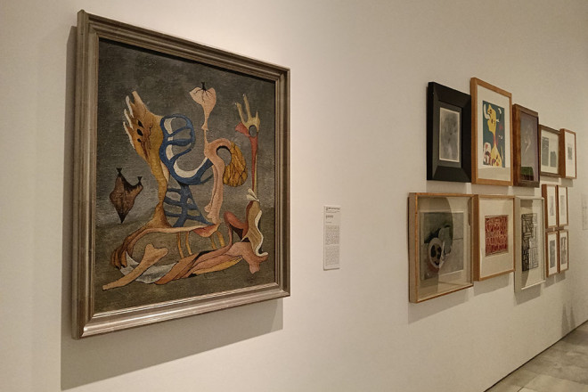 Da alegría, y un cierto orgullo, recorrer las salas del Museo Reina Sofía en Madrid, y volver a ver expuesto un cuadro de Juan Ismael: Amor hasta los huesos. Y verlo y disfrutar de una pieza que se encuentra en la misma sala que nombres tan ilustres como Óscar Domínguez, Dalí, Miró, Maruja Mallo, y a dos pasos del Guernica de Picasso, la joya de la corona del Reina.