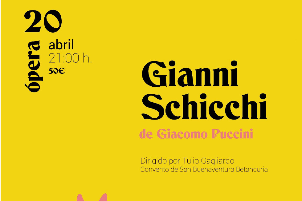 La asociación ÓperaFuerteventura G. Verdi llevará este sábado, 20 de abril, la obra Gianni Schicchi de G Puccini al Convento de San Buenaventura de Betancuria. Se trata de una ópera cómica en un acto con orquesta y solistas de nacionales e internacionales que homenajea el centenario de la muerte de Puccini.