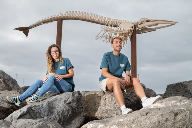 Alberto Sarabia y María Rodríguez son dos rostros amigos para la familia de calderones grises que transitan por el norte de la Isla. Ambos son biólogos marinos. En 2016, Alberto comenzó un monitoreo de cetáceos en Fuerteventura, gracias a una beca del Cabildo. Su investigación sentó las bases de cómo tomar los datos en la Isla y cómo iniciar un catálogo de foto-identificación del calderón gris en aguas del norte.