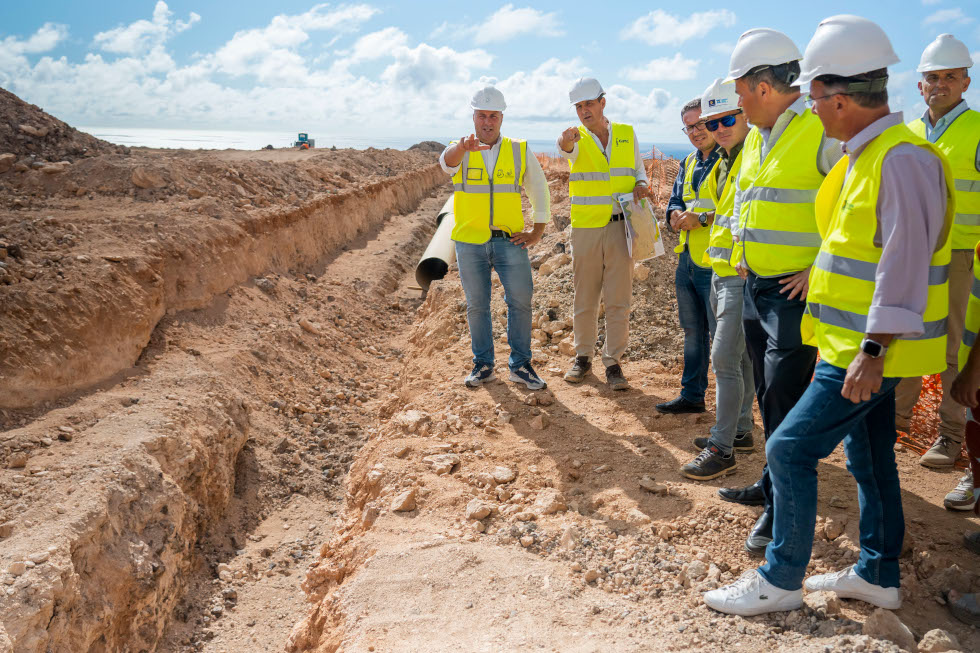 "Afortunadamente, -dijo- las obras están en marcha desde hace tres meses", suponiendo "una de las más importantes que tenemos ahora mismo en Fuerteventura". Con un plazo previsto de ejecución de 8 meses, los responsables políticos presentes en la visita coincidieron en asegurar que los trabajos marchan "a buen ritmo". Actualmente, explicó Lloret, ya se ha hecho acopio de "prácticamente el 40% de la tubería, que se ha comenzado a colocar" y se espera que la infraestructura "entre en funcionamiento cuanto antes, ya que la mayor parte de la población de la isla depende del buen funcionamiento de esta conducción, que se nos ha roto hasta en siete ocasiones en poco más de un año", recordó.