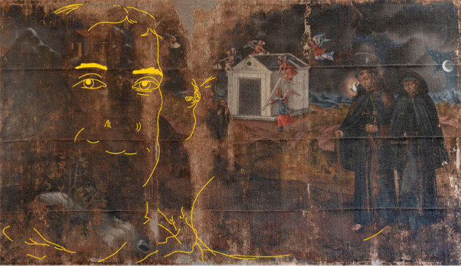 La restauración saca a la luz un rostro de grandes dimensiones ajeno a la pintura y todo un misterio para historiadores y restauradores
