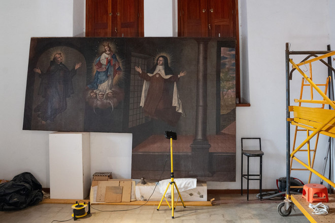 Los trabajos, encargados a la restauradora Chus Morante, se centraron en La construcción de un refugio por ángeles y Encuentro místico entre san Pedro de Alcántara y santa Teresa de Jesús, dos pinturas barrocas de la primera mitad del siglo XVIII atribuidas al tinerfeño Nicolás de Medina.