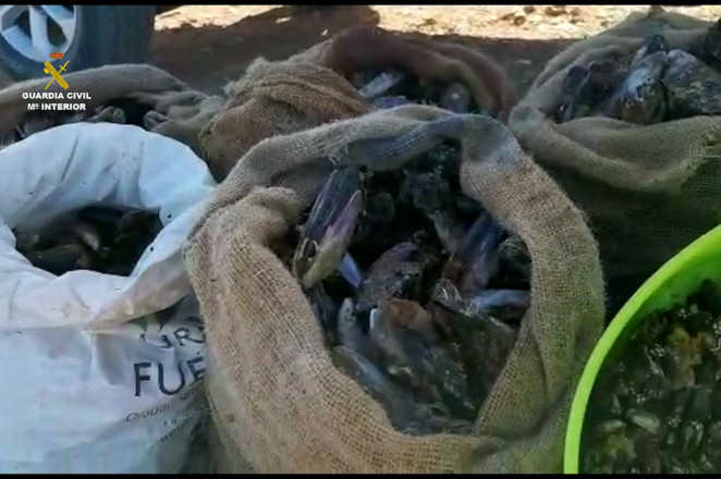 La Guardia Civil denuncia a tres personas por capturar 250 kilos de mejillones en época de veda