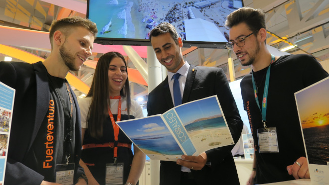 Tras departir con los diferentes agentes turísticos internacionales que cada año acuden a una de las tres grandes ferias europeas, junto a la World Tarvel Market de Londres y Fitur en Madrid, el alcalde de La Oliva, Isaí Blanco, lanzó un mensaje de "atención" al mismo tiempo de "tranquilidad", con respecto a la situación turística.