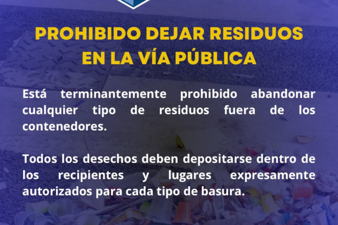 En este sentido, se informa sobre la prohibición de dejar basura en la vía pública, debiendo depositar los residuos siempre dentro del contenedor correspondiente: cartón, vidrio, envases, orgánico, etc. Además, los establecimientos deben cumplir con las normas de gestión y traslado de residuos, incluidos los aceites usados y la basura debe transportarse desde el local hasta el punto limpio en contenedores estancos, evitando derrames o vertidos en la vía pública durante su traslado.