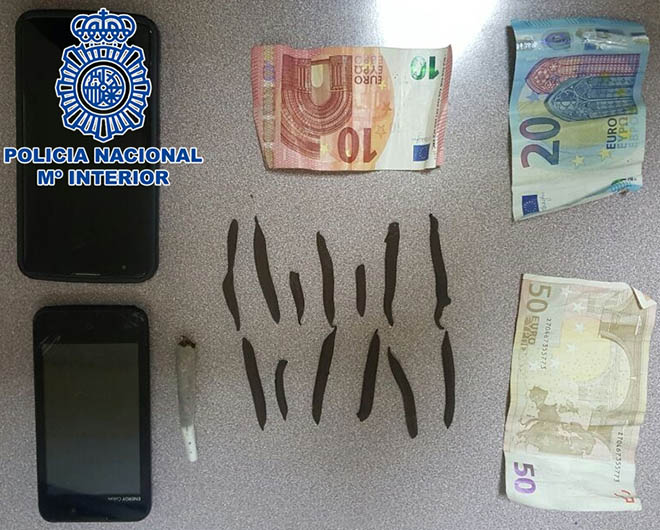 Los funcionarios policiales realizaron al individuo un cacheo de seguridad en el que fueron incautadas 13 barritas de hachís cortadas y preparadas para su venta, por lo que fue detenido como presunto autor de un delito contra la salud pública.