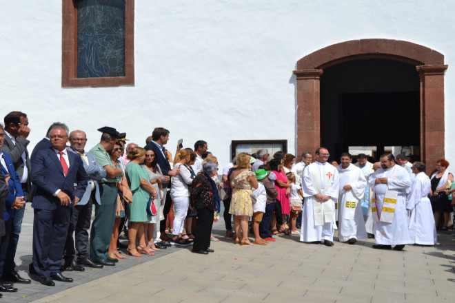 Las principales autoridades, con el presidente del Cabildo a la cabeza, asisten al acto religioso, seguido por cientos de fieles.
