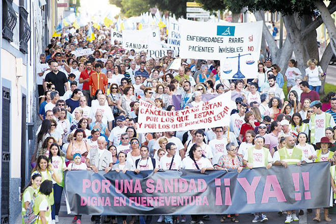 Han pasado ya casi cinco años desde aquel 23 de septiembre de 2016, el día en que unas 15.000 personas pidieron a gritos en las calles de Puerto del Rosario una mejora de la situación sanitaria de la Isla. Habían sido convocadas por la Plataforma por una Sanidad Digna en Fuerteventura Ya y, poco después, solo unos días más tarde, la protesta ya tuvo su efecto político.