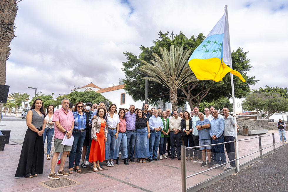 Asamblea Majorera – Coalición Canaria Fuerteventura conmemora, este miércoles 22 de octubre, el Día de la Bandera Nacional Canaria con un izado frente al Cabildo insular. La bandera de las siete estrellas ondeó en el cielo majorero en su sexagésimo primer aniversario, acompañada con la voz de Gara Alemán y Sara Moséguez al timple, que interpretaron el Himno Canario. La lectura del manifiesto estuvo a cargo de David Herrera Ginory.