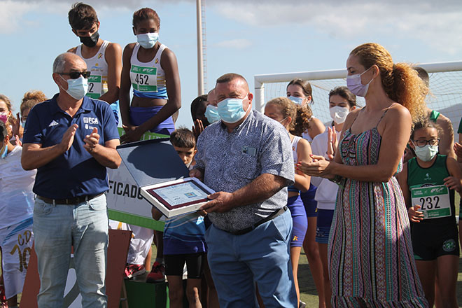 El propio alcalde recogía de manos del representante de la Federación Insular de Atletismo en Fuerteventura, Ramón Domínguez, una placa agradeciendo al Ayuntamiento de Antigua su implicación en la práctica del atletismo en el municipio.