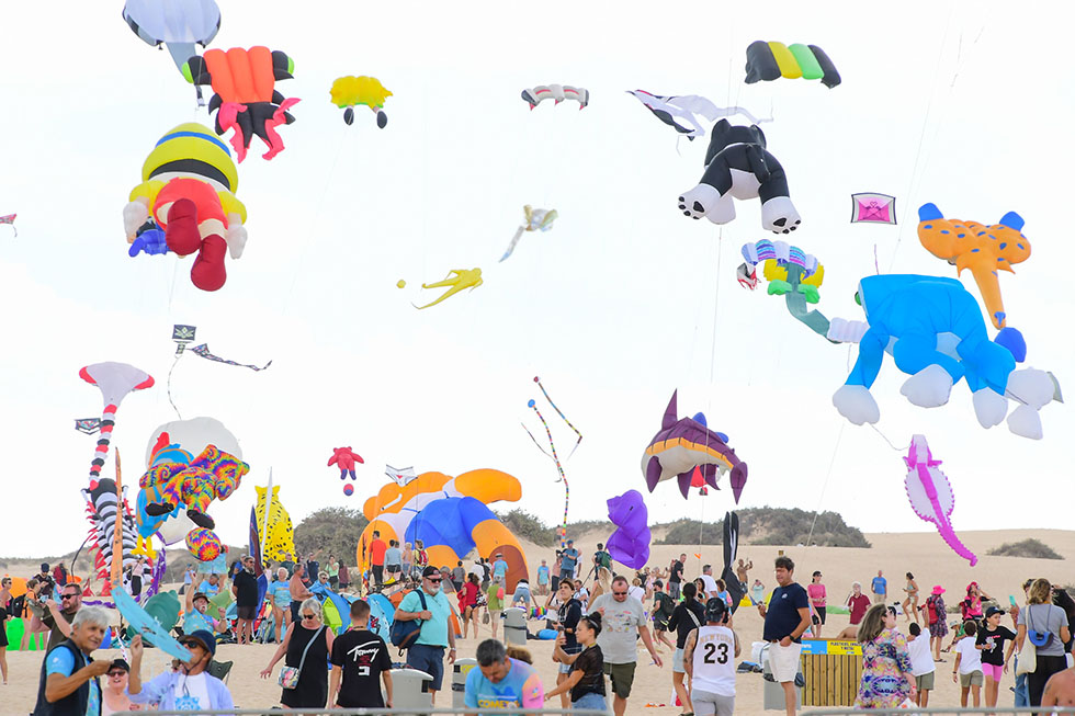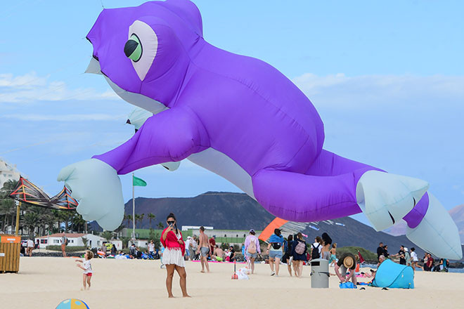 Las cometas surcan ya los cielos del paraje natural de las Dunas de Corralejo, en La Oliva, Fuerteventura. Los más de 300 cometistas participantes se han trasladado ya a la espectacular ubicación de las Grandes Playas para hacer disfrutar a todos con el vuelo de las cerca de un millar de cometas que forman parte de la 37ª edición del Festival Internacional de Cometas de Corralejo.