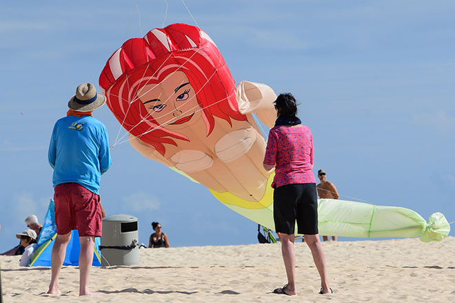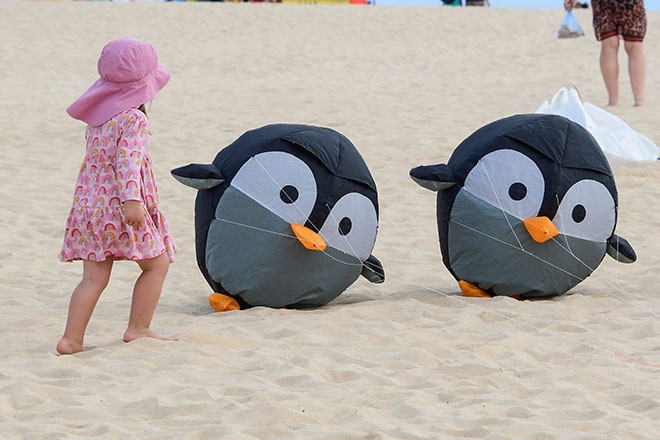 Las temperaturas más propias de verano en pleno mes de noviembre han animado a que muchos visitantes y curiosos pudieran además disfrutar del mar y la playa, rodeados de las figuras de fantasía de las cometas de colores.