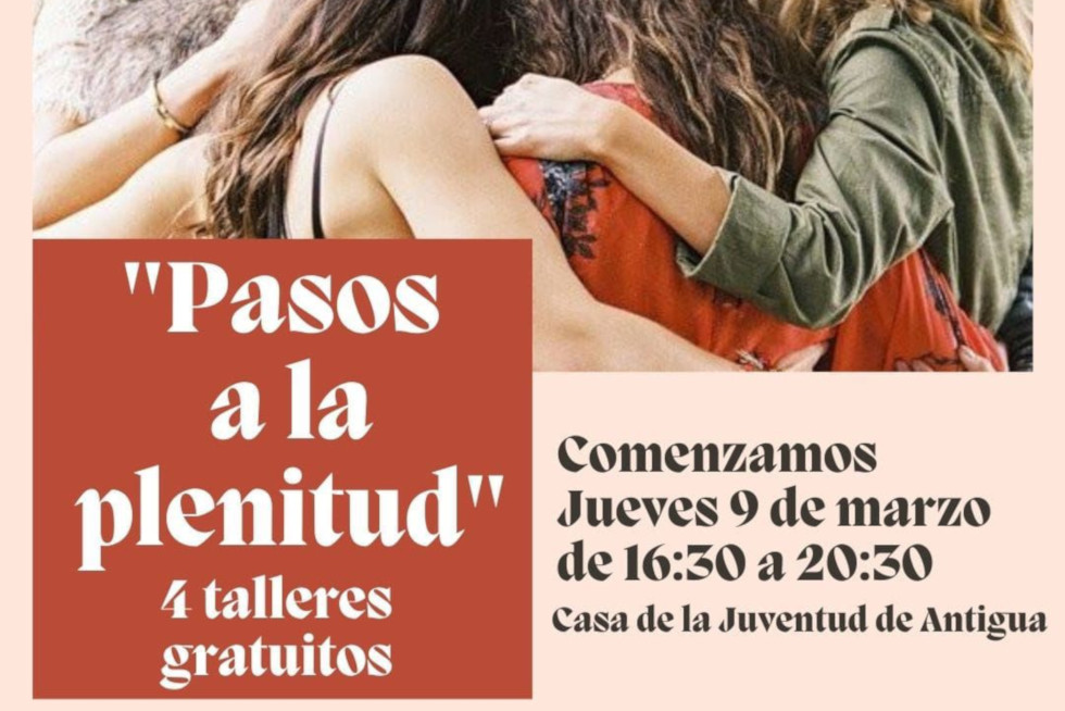 Los cuatro talleres Pasos a la plenitud, son gratuitos y se imparten los jueves desde este 9 de marzo de 16:30 a 20:30 horas en el Centro de la Juventud de Antigua. Las personas interesadas pueden ampliar información llamando por las mañanas al departamento de Servicios Sociales, teléfono 92854965.