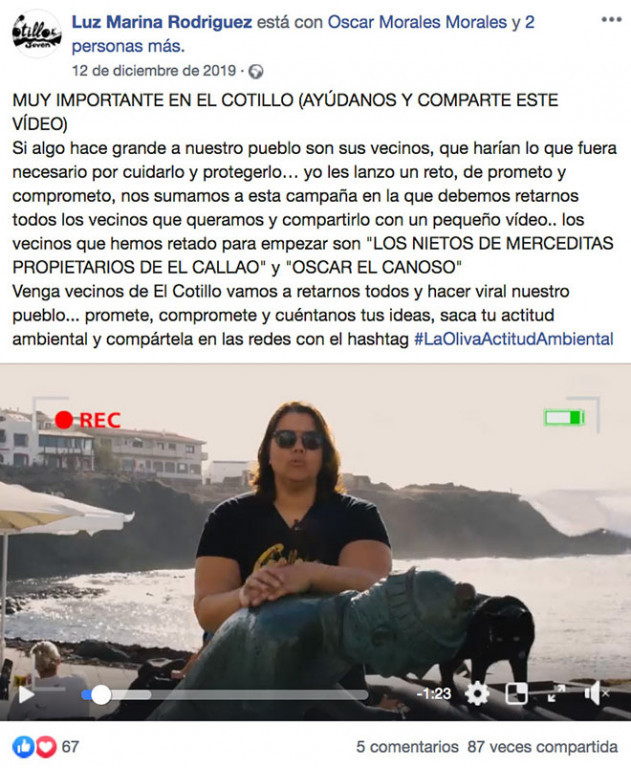 Las redes sociales se inundan de la actitud ambiental de los vecinos y vecinas de La Oliva