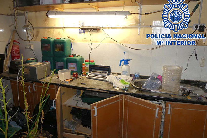 Allí fue localizado un invernadero clandestino con un total de 413 plantas de marihuana, además varios sistemas de ventilación, extracción e iluminación artificial para acelerar su crecimiento. Junto al mismo se ubicaba un laboratorio, donde fueron intervenidos productos químicos, abonos y una pesa de precisión.