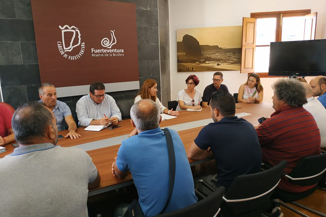 La presidenta del Cabildo de Fuerteventura, Lola García, y los miembros del grupo de gobierno se reunieron este miércoles con una representación del comité de empresa y de la junta de personal del Cabildo de Fuerteventura para exponer sus líneas de trabajo en relación con la plantilla de trabajadores del Cabildo.