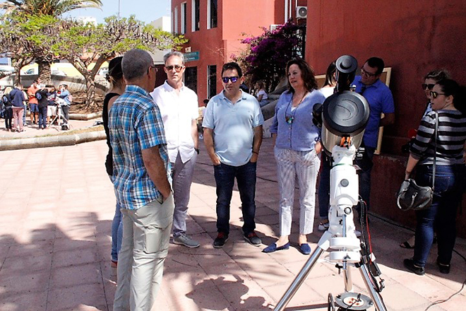 La consejera de Educación y Universidades, Soledad Monzón, participó en la presentación del equipo al alumnado del Centro Integrado de Formación Profesional (CIFP) Majada Marcial, que acudió al CEP para una primera toma de contacto con dispositivos de observación astronómica en una actividad en la que participó la Agrupación Astronómica de Fuerteventura.