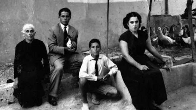 Imagen de la familia materna del escritor en los años treinta. La abuela y viuda Frasquita, sus tíos y su madre Lola Tejera.