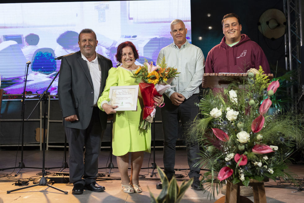 Más de 500 vecinos, vecinas, familiares y amigos arroparon el Pregón de las Fiestas de Antigua, y a su pregonera acompañada en el escenario por el timplista Víctor Estárico y el pianista Domingo Saavedra, además de las actuaciones de la charanga y parranda El Campillo o la presencia de las componentes de la murga Los Cachivaches.