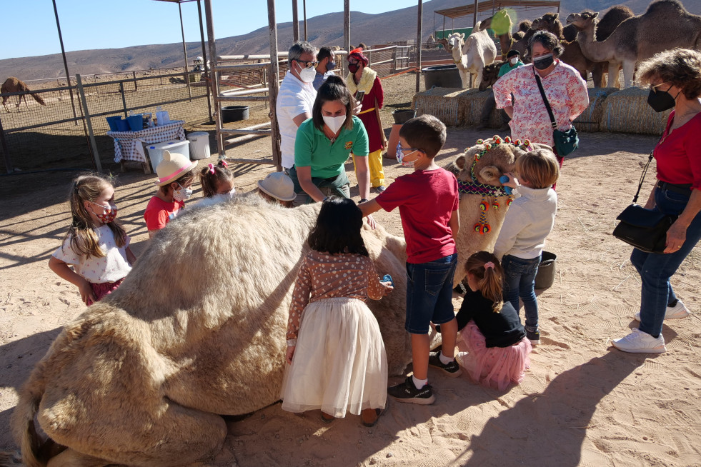 Cientos de personas han visitado la granja Dromemilk, conociendo de primera mano a los camellos que tradicionalmente acompañan a sus Majestades, en esta acción educativa organizada, un año más, por Oasis Wildlife Fuerteventura y la Fundación Chekipa, en colaboración con la Consejería de Educación y Juventud del Cabildo de Fuerteventura y el Hotel Mirador de Fuertevetura.