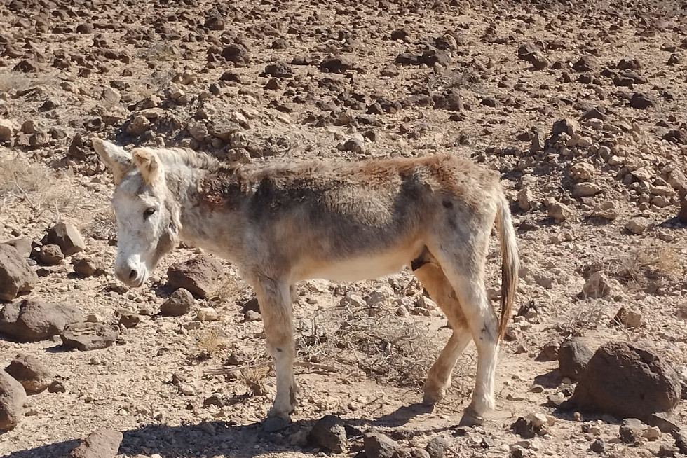El rescate se puso en marcha tras recibir un aviso tanto en Oasis Wildlife como en el Ayuntamiento de Pájara, sobre un burro majorero, salvaje, adulto y herido, que había sido avistado en las cercanías del Barranco de Jorós y la playa de Cofete.