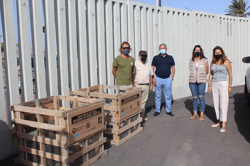 Para ello, se instalarán contenedores en Cotillo, Corralejo, Puerto del Rosario, Morro Jable y Gran Tarajal. Los contenedores están construidos con pallets reciclados y se habilitan gracias a la cooperación de Clean Ocean Project. Con la habilitación de dos contenedores por puerto, se separarán, por un lado, las artes de pesca encontradas y, por otro, el resto de residuos.
