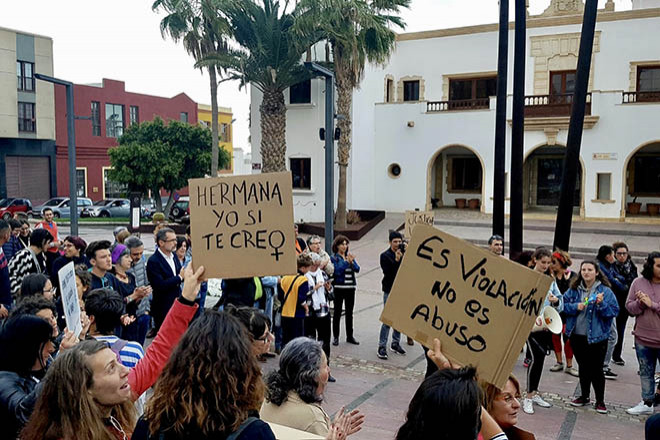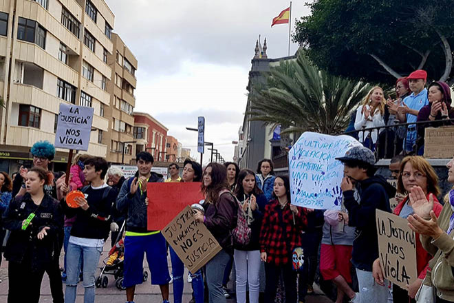 Los actos de protesta se han sucedido en numerosas ciudades. En Puerto del Rosario, decenas de personas se manifestaron para mostrar su repulsa por la resolución judicial. En una de las pancartas se podía leer: “Cultura de la violación es no llamarle violación a una violación”.