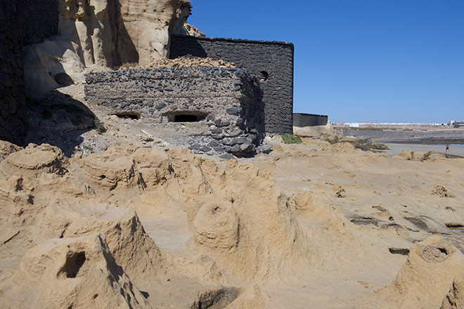 La arquitectura militar de Fuerteventura cuenta con nidos de ametralladoras y baterías de costa distribuidas por toda la costa este de la Isla. Estas estructuras fueron creadas en los años cuarenta del pasado siglo como instrumentos de defensa de Fuerteventura ante una posible participación de España en la Segunda Guerra Mundial. Tras finalizar la Guerra Civil, España empezó a mostrar cierta simpatía hacia las potencias del Eje. Aunque no llegó a participar en la contienda bélica, Franco no ocultó su cercanía hacia las corrientes fascistas que recorrían Europa. Pronto, empezó a circular el rumor de una posible invasión de las Islas Canarias desde África por parte de los aliados.