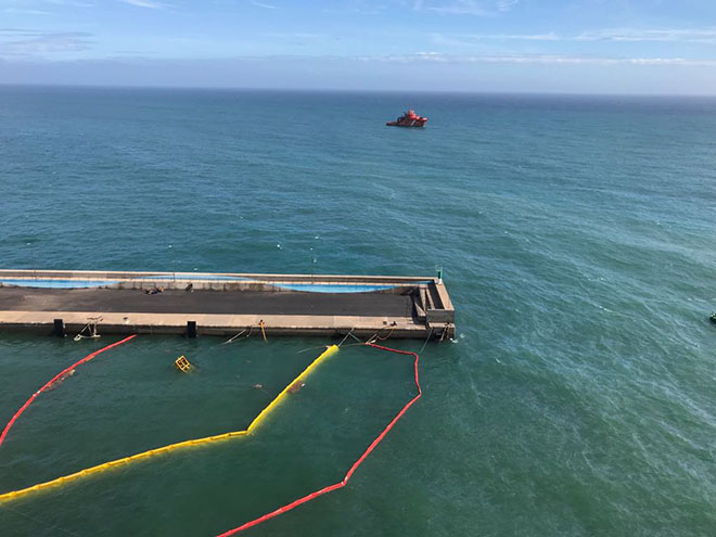 La colocación estos días de barreras de contención han permitido mantener la mayor parte del derrame dentro de los márgenes del muelle y las manchas de gasóleo salidas al mar se han disuelto gracias a la labor de dispersión realizada por las embarcaciones de Salvamento Marítimo, de la Armada y de voluntarios, sin que hayan llegado a la costa.