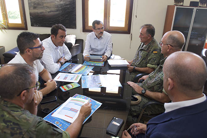 En la reunión, a la que también asistieron el teniente coronel Luis Rubio, y el consejero de Deportes del Cabildo, Andrés Díaz, se llegó al acuerdo de establecer un convenio entre la Institución insular y el Regimiento de Infantería Soria 9 de cara a que se contemple en los presupuestos de 2018 de la Institución insular una partida presupuestaria específica para futuras ediciones.