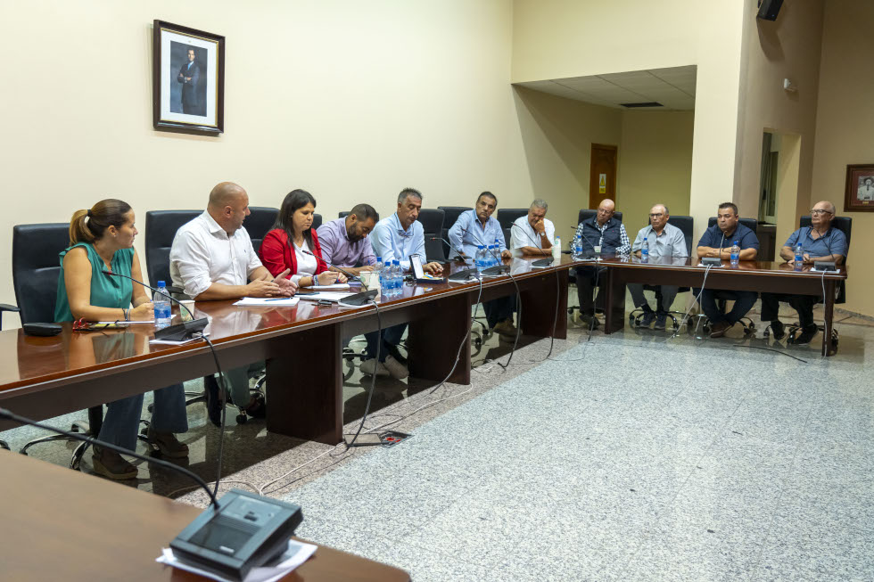 El presidente del Cabildo de Fuerteventura y consejero de Infraestructuras, Sergio Lloret López, acompañado por la vicepresidenta primera, Lola García, y el vicepresidente segundo, Claudio Gutiérrez, ha mantenido una reunión con el Ayuntamiento de Tuineje y el Club de Lucha Maxorata, a petición de este último, para abordar la necesidad de mejora de las condiciones de seguridad y accesibilidad en las infraestructuras deportivas del terrero de lucha 'Pedro Sánchez' de Tarajalejo, así como para plantear la instalación de un nuevo terrero de lucha en la Comarca Sur.