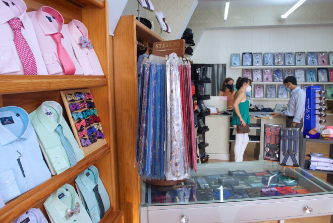 Pino reconoce que cuando se vende ropa de fiesta en Fuerteventura es “de febrero a noviembre. Marzo, abril y mayo son los meses de comunión fuertes. Luego, terminan en junio y comienzan las bodas y bautizos”.