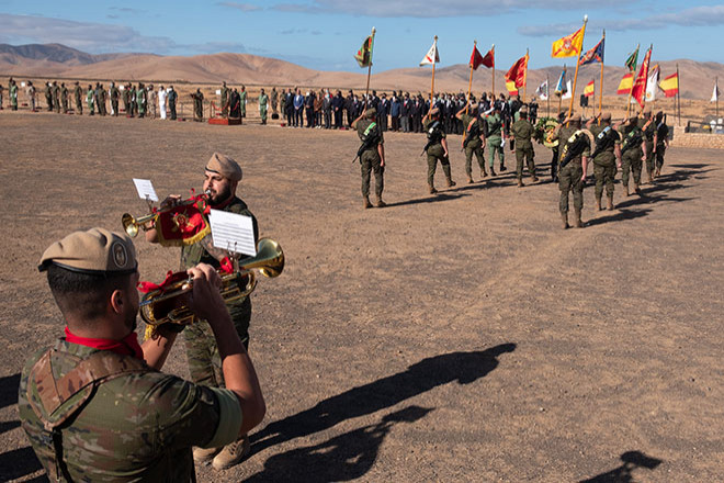 En el homenaje, han participado la Compañía de Honores del Batallón de Infantería Protegida "Fuerteventura" 1/9 (BIPROT 1/9) del Regimiento de Infantería Soria 9 y una Escuadra de Gastadores de la BRIPAC.