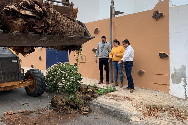 Este lunes los operarios municipales ya han comenzado a reparar los desperfectos provocados por los fuertes vientos. La alcaldesa, Esther Hernández, y varios concejales han visitado las zonas afectadas y comprobado la evolución de los trabajos.