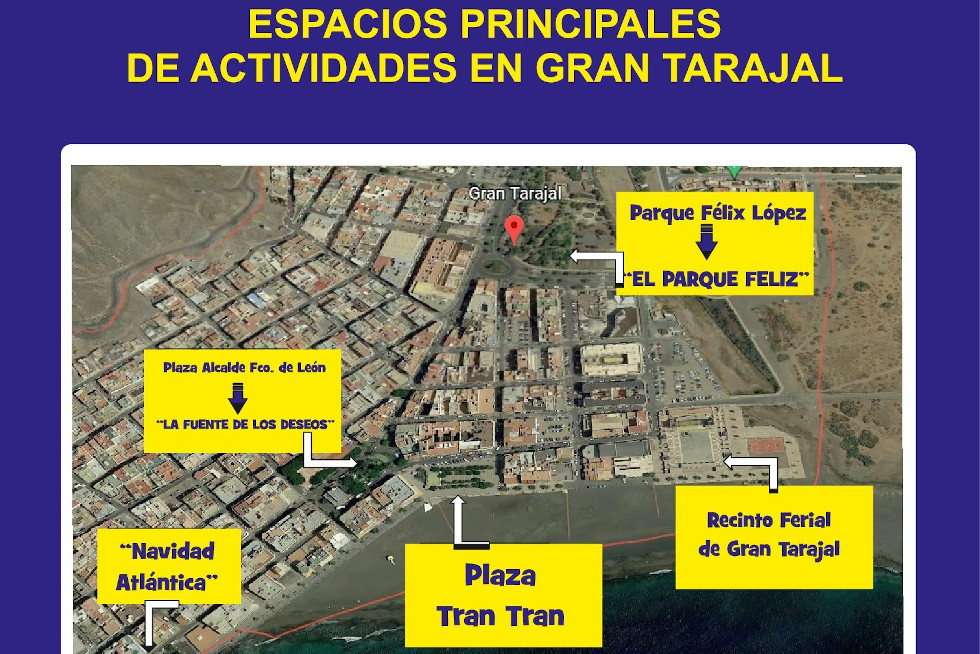 "Este año contaremos con un sinfín de actividades para todas las edades, como son talleres infantiles, nuestro tradicional tren navideño, espectáculos musicales y demás. A través de la Concejalía de Comercio seguimos impulsando a través de estas actividades las compras dentro de los comercios de nuestro municipio" ha añadido el concejal de Comercio, Cristofer Jaime. Además, ha comunicado que "como es costumbre dentro de nuestro municipio la navidad este año llega cargada de sorpresas, como son las actuaciones de mini pasacalles por los comercios del pueblo de Gran Tarajal, espectáculos de magia y la esperada visita de Papá Noel, que vendrá desde el Polo Norte a conocer a todos los niños y niñas del municipio los días 22 y 23 de diciembre.