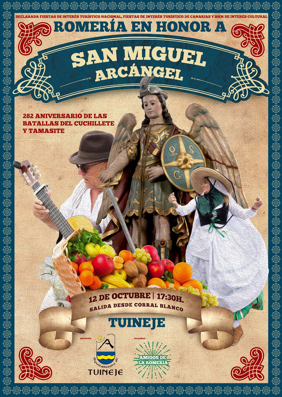 Este miércoles, 12 de octubre, tendrá lugar la esperada Romería con motivo de las Fiestas Juradas en honor a San Miguel Arcángel en la localidad de Tuineje. Para este año las personas que deseen participar con carrozas o carretas podrán inscribirse en el mismo día.
