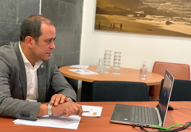 El presidente del Cabildo de Fuerteventura, Blas Acosta, y el gerente del Patronato de Turismo, Moisés Jorge, se han reunido este martes por videoconferencia con los representantes de varios de los principales turoperadores internacionales y compañías turísticas que operan en Fuerteventura, quienes han mostrado su voluntad de comenzar operaciones en cuanto las condiciones sanitarias y de apertura de fronteras lo permitan.
