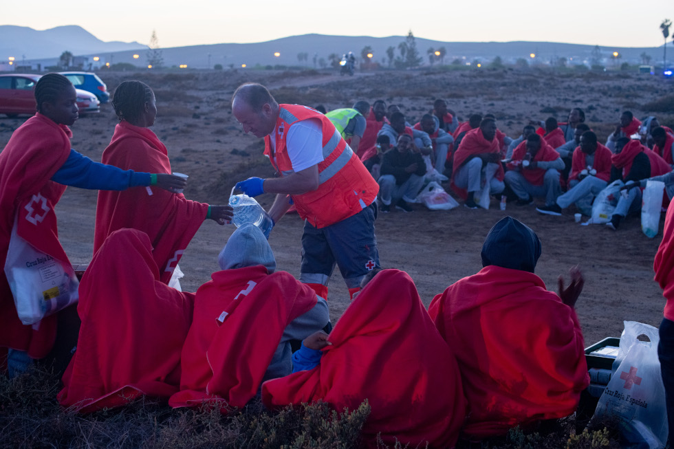 Según el recuento de Cruz Roja, la primera embarcación, que entró a Fuerteventura por la zona de las Salinas del Carmen, tocó tierra sobre las 17.46 horas del jueves con 58 personas a bordo, todas en buen estado de salud.