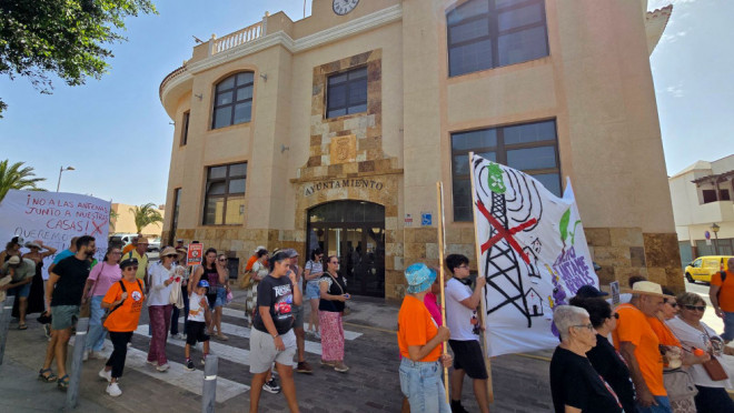 Vecinos de Antigua se manifiestan contra la instalación de una antena de telefonía móvil a 50 metros de sus viviendas