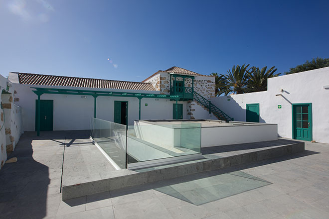 “El Museo se fundamenta en dos volúmenes: uno que responde a un lenguaje más contemporáneo y otro más tradicional, que confluyen en la entrada principal, donde se encuentran pero no se llegan a tocar; es un guiño”. De este modo explica Domínguez el juego de voces que reúne la fachada, dividida, como la totalidad de la edificación, en esa dualidad entre tradición y nueva arquitectura; el guiño al que hace referencia es algo más que este concepto de doble identidad y hay que buscarlo en lo matérico: la piedra blanca utilizada en todo el volumen tradicional no es otra que la roca calcárea con que fue tallada la fachada de la Iglesia de Nuestra Señora de la Regla, elemento de principal valor patrimonial y distintivo cultural del pueblo de Pájara.