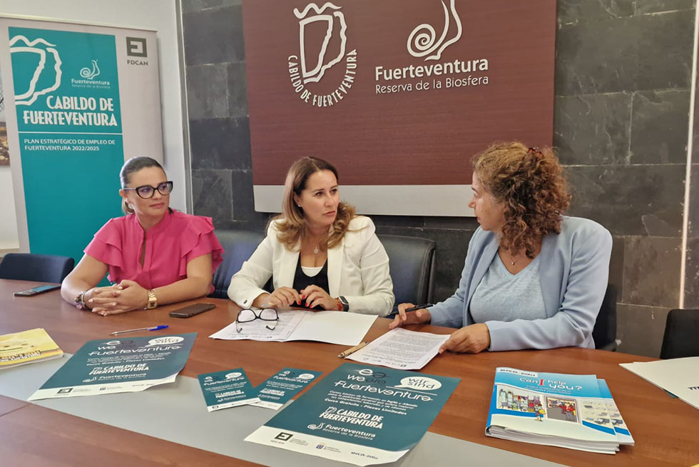 El convenio para dar continuidad a los programas de formación fue firmado este lunes, 23 de septiembre, por la presidenta del Cabildo, Lola García, la consejera de Fomento del Empleo, Nuria Cabrera, y la delegada de ECCA.edu en Fuerteventura, Carmen Nieves Hernández.