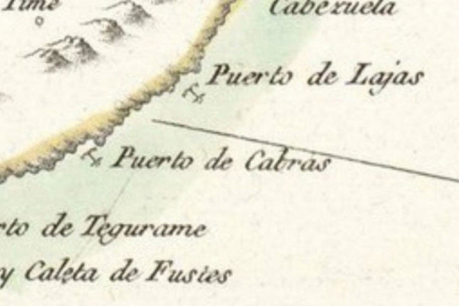 La existencia de una rada apta para el fondeo de barcos le otorgó el nombre de puerto; la posible existencia de charcos y fuentes de agua dulce donde abrevaba el más emblemático animal de Fuerteventura completó su nombre. Y ese nombre, Puerto de Cabras, vio crecer el lugar: Puerto de Cabras fue donde se instaló una de las fundadoras del pueblo, María Estrada, quien alrededor de 1795 estableciera la primera taberna del lugar; Puerto de Cabras será el nombre original del nuevo municipio creado en 1834; Puerto de Cabras sería el nombre de la capital insular, el lugar que impulsó la economía comercial de la isla, el lugar que visitó y describió Olivia Stone en 1884 o el territorio al que fueron desterrados Unamuno, Soriano o Durruti durante la primera mitad del siglo XX.